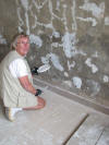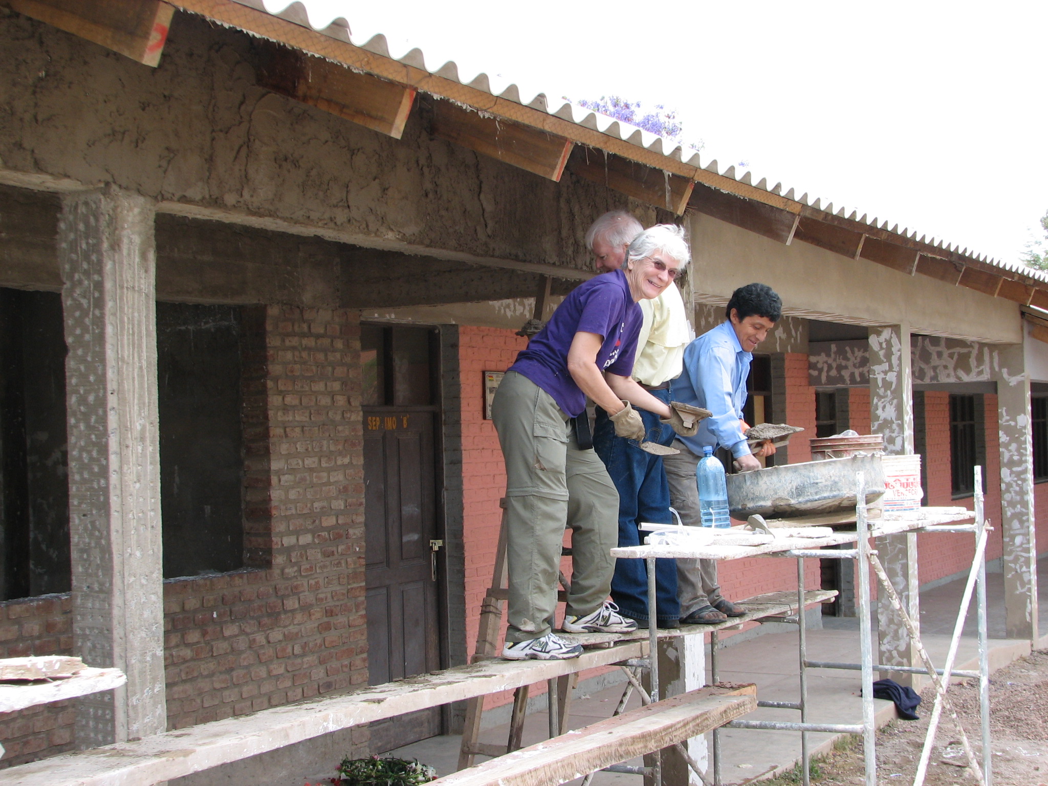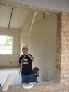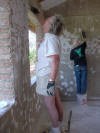 This next group of pictures are Roadies doing various tasks, anything from chipping holes in columns to improve stucco adhesion, to stuccoing, to spackling, to painting, to tiling and, the new addition to these trips, teaching English. The head mason is Felix with his brother, Cresencio, and Raul as helpers. As the last two pictures show, gringo watching was a popular pastime with the kids.
