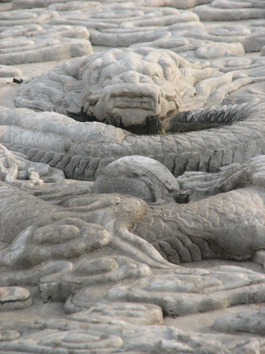 The aptly named Largest Stone Carving is a river of dragons pouring down a stairway. It is a single stone monolith 17 x 3 x 1.7 meters weighing over 200 tons.