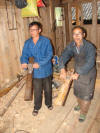 Above is a noodle shop we visited while strolling down the street. Here the man loads a mixer, the woman feed the roller and the master noodle comes out to be cut into long strands and dried on a rack near the street. According to their certificate the Health Department had not been around for some five years. We cruised past what Jai called "villages". Anything the size of St Louis or below is a village to the Chinese. My preferred translation of the characters carved in the cliff is "Kilroy was here."